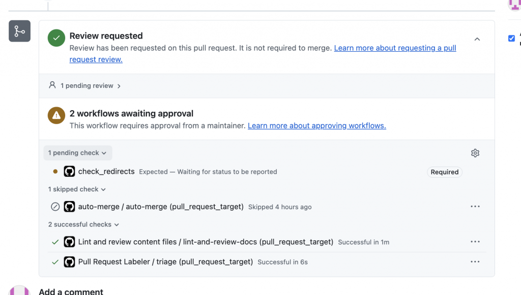 The automatic review was done in a span of seconds, all the checks have been passed and I have been assigned with a reviewer.